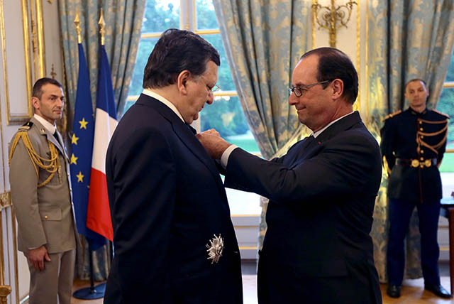 François Hollande, giving the French Legion of Honour to José Manuel Barroso at the Elysee Palace in Paris (EC Audiovisual Services, 9/07/2014)