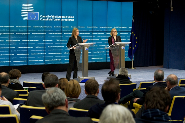 Mrs Mogherini is trying hard to convince EU Ministers of Foreign Affairs to increase sanctions against Russia at the extraordinary Foreign Affairs meeting during last Thursday’s Council. Her Greek colleague, Mr Kotzias, apparently is not an easy one. Mrs Mogherini is the High Representative of the EU for Foreign Affairs and Security Policy (TVnewsroom Council, 29/01/2015)