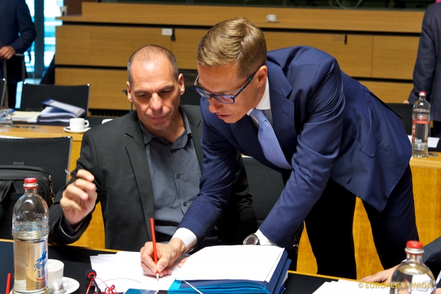 From left to right: Mr Yanis VAROUFAKIS, Greek Minister for Finance; Mr Alexander STUBB, Finnish Minister for Finance. (TVnewsroom European Council, 19/06/2015)